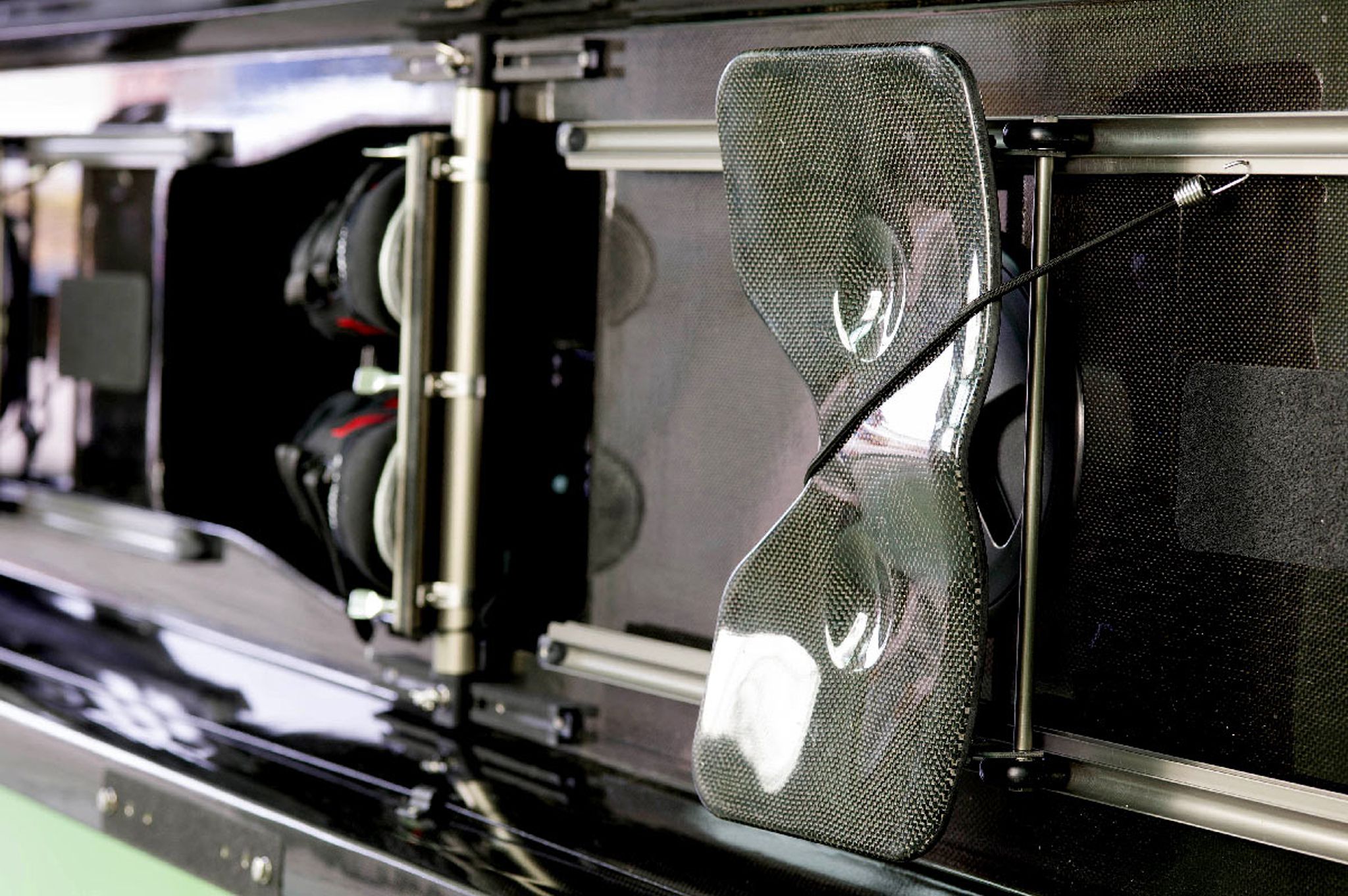 Spirit combines carbon fibres (external skin) with carbon fibres (internal skin) to achieve a high quality honeycomb sandwich structure providing optimal stiffness. Seat decks and bulkheads are made of carbon fibre sandwich under high pressure. Without a doubt the most successful choice on the market for highly competitive teams.