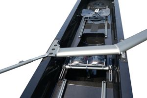 Shadow, a fiberglass skinned Coremat sandwich structure with carbon tapes reinforcements to achieve an economic option, suitable for recreation and initiation training in a competition shell. Seat decks and bulkheads are made of glass fibre sandwich with coremat mixed with honeycomb under high pressure.