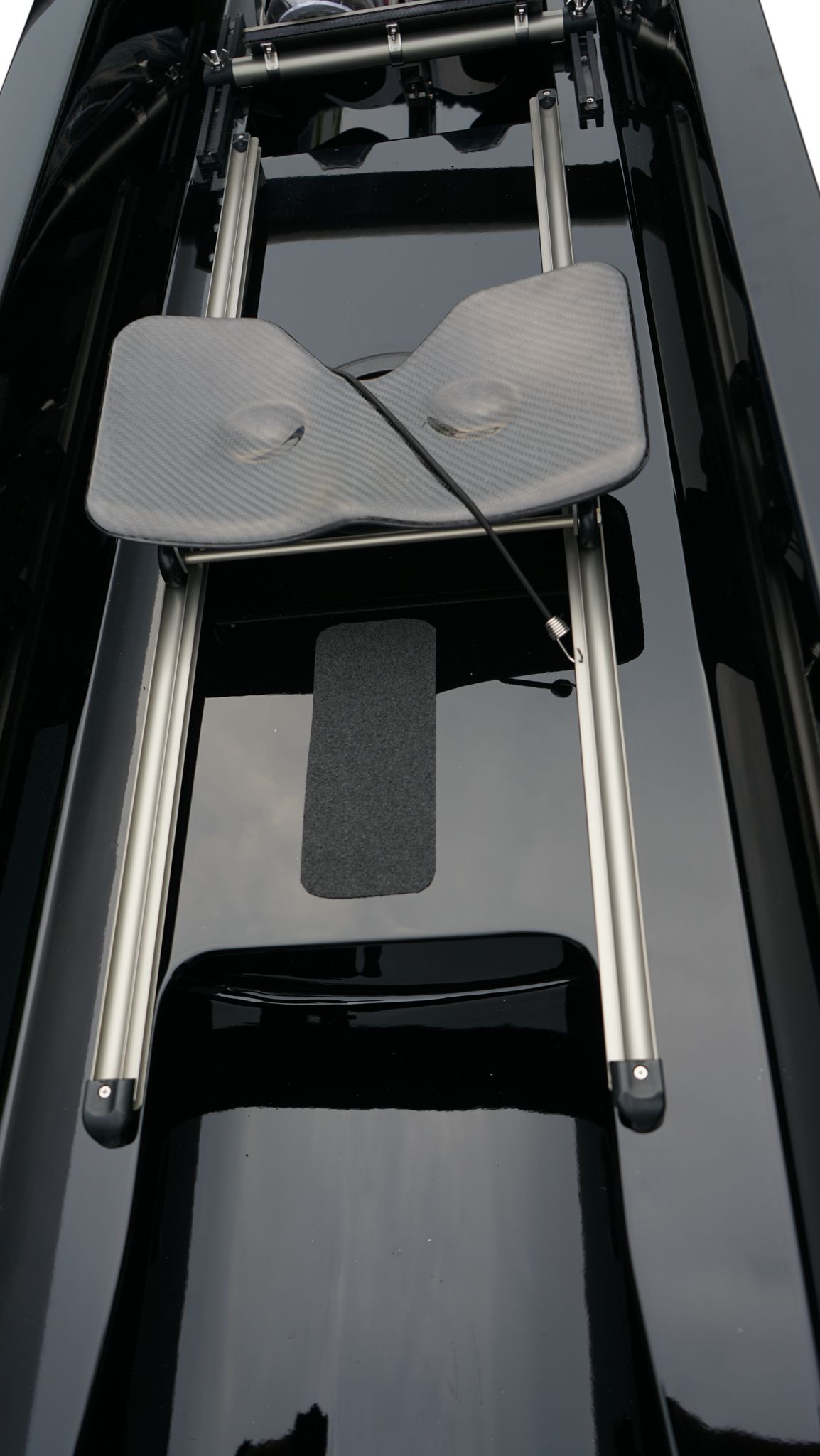 Shadow, a fiberglass skinned Coremat sandwich structure with carbon tapes reinforcements to achieve an economic option, suitable for recreation and initiation training in a competition shell. Seat decks and bulkheads are made of glass fibre sandwich with coremat mixed with honeycomb under high pressure.