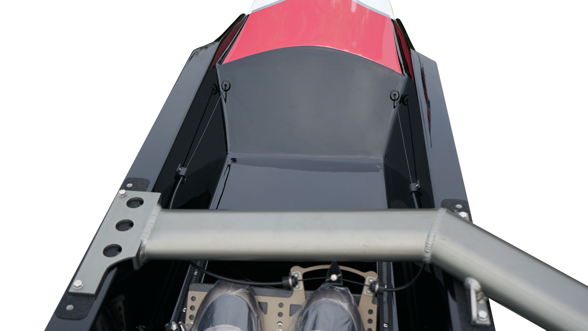 Spirit/USA, a Kevlar skinned honeycomb sandwich structure with carbon tapes reinforcements to achieve an optimal price-quality ratio for competitive teams with a high use of material and a larger fleet. Seat decks and bulkheads are also made of Kevlar fibre sandwich.
