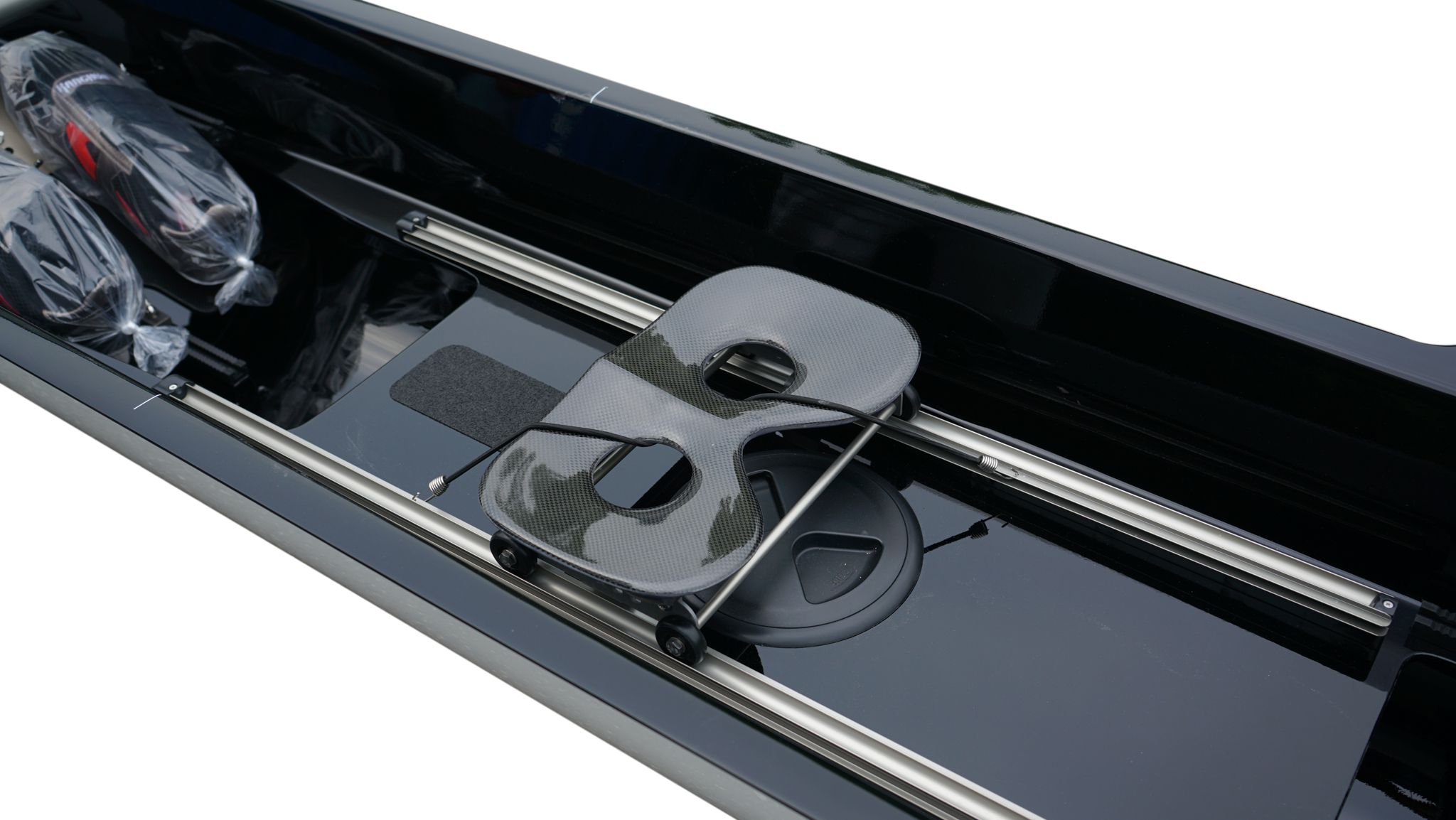 Phantom, a fiberglass skinned honeycomb sandwich structure with carbon tapes reinforcements to achieve a more economic price-quality ratio for teams with a high use of material and a larger fleets, like schools or clubs who want to equip their crews with boats without dispensing with a competition shape for training. Well suited for recreational use. Seat decks and bulkheads are made of carbon fibre sandwich under high pressure.